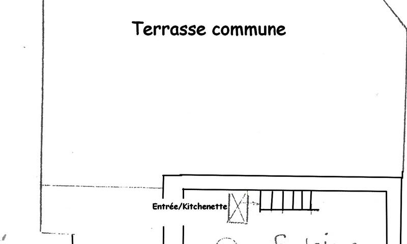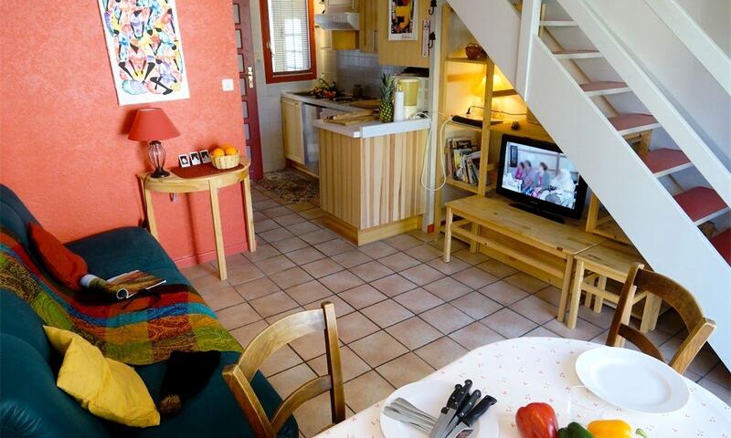 Cet appartement de 36 m2 habitable en duplex, comprend un séjour avec canapé et fauteuil, kitchenette équipée (lave-vaisselle, grille-pain, four micro- ondes grille), téléviseur, salle de d'eau avec wc. a  l'étage deux chambres légèrement mansardées avec une chambre avec un lit deux personnes et une chambre avec lits jumeaux placard. grande terrasse commune de 25 m2 exposée sud ouest.