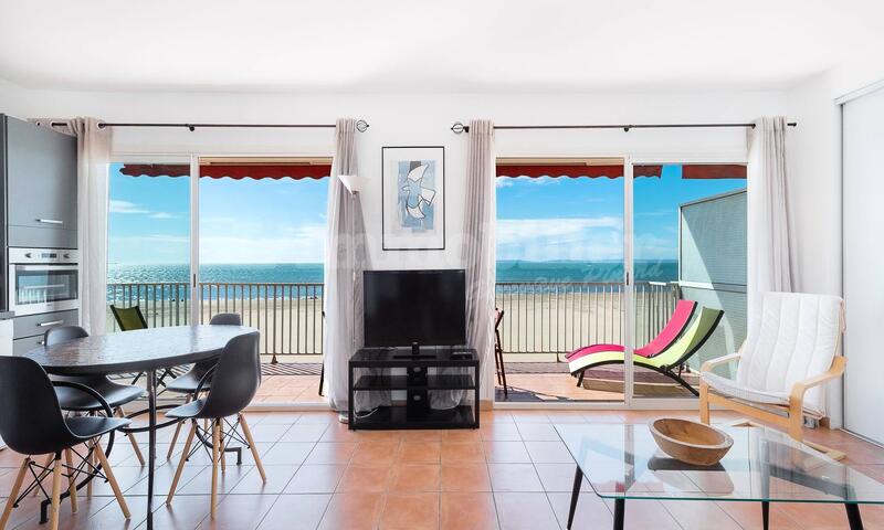CENTRE VILLE - RIVE DROITE - P3 sur la Plage, emplacement idéal, face à la mer et à 600 m du centre Ville. Composé d'un salon avec une magnifique vue sur la mer, canapé convertible en 140cm, TV et wifi, ventilateur, cuisine ouverte équipée (Four ,frigo/congélateur, lave-vaisselle , lave linge, micro-ondes, cafetière). Chambre 1 avec un lit double en 160cm. Chambre 2 avec un lit double en 140cm, une salle d'eau et un wc séparé. Grande terrasse d'angle de 21m² avec store banne électrique. Résidence sécurisé. 1er étage. Meublé et équipé pour 6 personnes. Possibilité de louer un garage en sous sol à proximité en supplément.