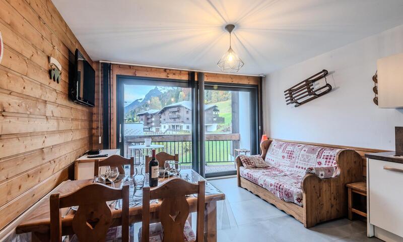 - Un salon avec canapé convertible, télévision et un accès balcon