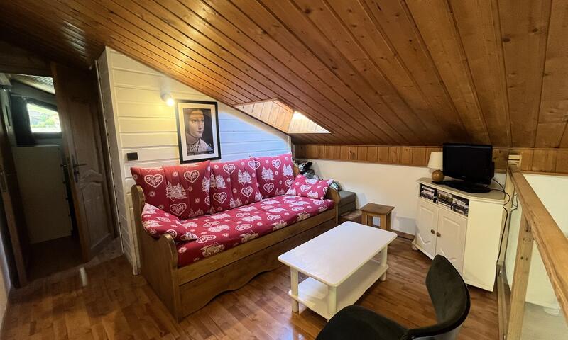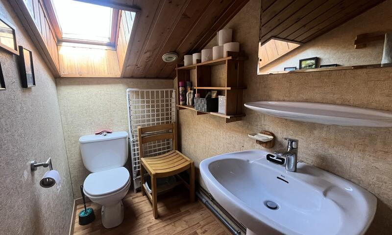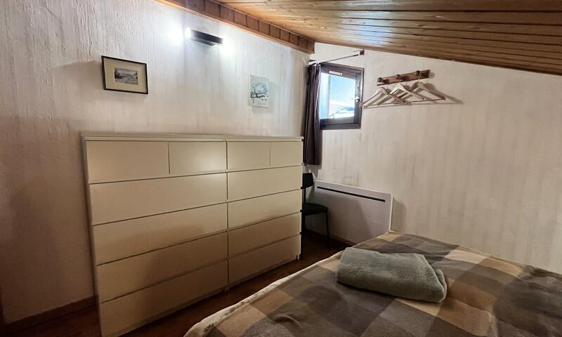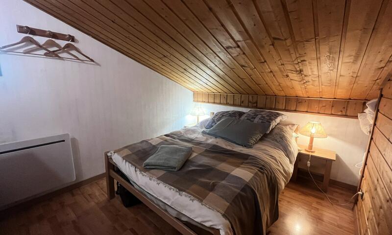 A l'entrée, un coin montagne avec 2 lits superposés, un lit double dans la chambre au rez-de-chaussée, dans la chambre à l'étage un lit double également, et un canapé clic-clac dans la mezzanine. Il y a aussi une salle de bains avec baignoire, un WC séparé, un séjour, une cuisine, et un balcon côté Est.