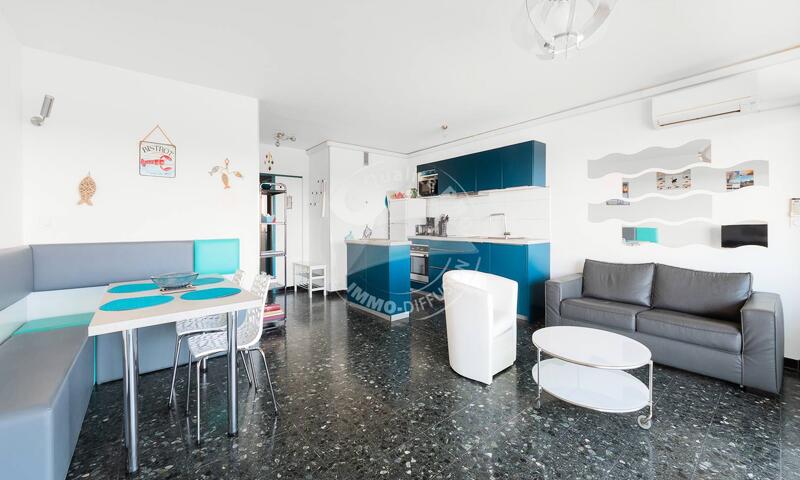 Au 3 ème étage avec ascenseur, P3 rénové de 62m² traversant, comprenant un séjour lumineux et spacieux avec canapé convertible en 140 cm, une climatisation, une télévision et la wifi donnant sur une terrasse de 8m² exposé sud-ouest avec très belle vue sur la Mer (Table et chaises). Une cuisine entièrement équipée (Frigo/congélateur, micro-ondes, four, lave-vaisselle, plaque de cuisson) avec un ilot central. Deux chambres, une avec un lit double en 140 cm et l'autre avec 2 lits simples en 90 cm et un lit tiroir en 90 cm. Une salle d'eau avec lave-linge et un wc séparé. Local à vélos. Meublé et équipé pour 6/7 personnes. Animaux non admis.