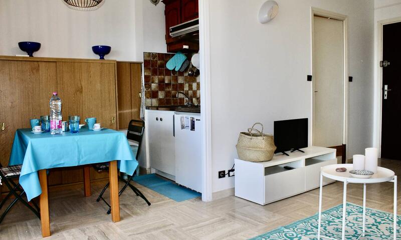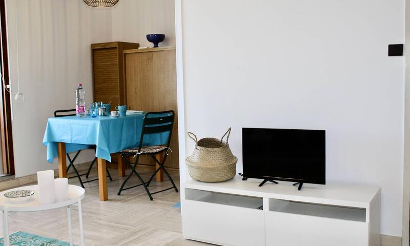 Doté d'un balcon fermé et offrant une vue sur le littoral méditerranéen, ce coquet studio climatisé comprend un spacieux séjour lumineux avec télévision, un coin repas, un canapé avec lit escamotable en 140 cm. La cuisine est équipée d'une plaque deux feux, d'un réfrigérateur top. Une salle de bain avec toilette. Un parking privé complète ce bien. Les serviettes et le linge de lit ne sont pas fournis. Le ménage de fin de séjour est inclus.