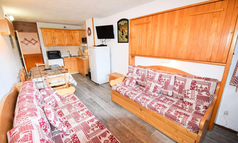 Studio divisible 4 pers, 28m², expo Est avec balcon, vue sur les pistes et la montagne, 2ème étage avec ascenseur. Cuisine dans entrée : 2 plaques induction, réfrigérateur, lave-vaisselle, four micro-ondes, Nespresso (dosettes non fournies) - Séjour divisible : coin repas, TV, 1 canapé lit rapido (160cm) et 2 lits superposés séparés du séjour par une cloison accordéon. Salle de bain : baignoire et wc inclus Sols : PVC. - literie : 2 couettes simples et 1 couverture double - Appartement non fumeur, animaux non admis. En option et en supplément: Ménage de fin de séjour, draps, serviettes, forfaits ski.