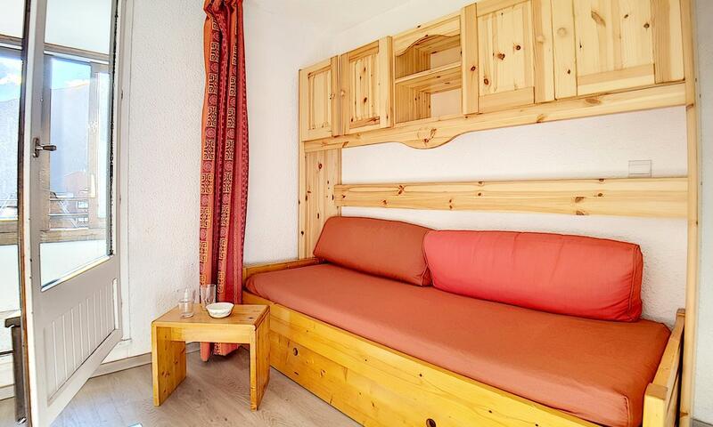Grand coin montagne (avec fenêtre) séparé du séjour par un rideau : 1 canapé-lit 2 personnes en 120 cm.