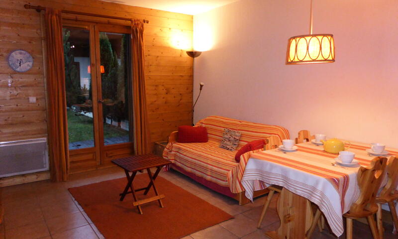 L'appartement est au rez-de-jardin d'un immeuble situé à 100m d'un arrêt navette, d'un supermarché et à 1km du centre des Houches.