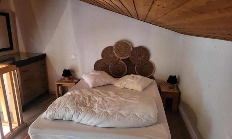 Chambre (séparée du séjour par une porte coulissante) : 1 lit double