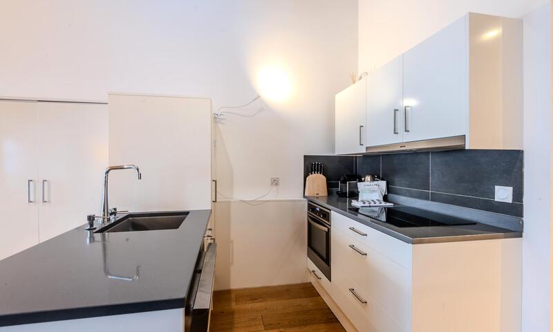 - Cuisine équipée (réfrigérateur, plaque à induction, four, micro onde, lave vaisselle, grille pain, cafetière, appareil à fondue, bouilloire, appareil à raclette, appareil à gauffres) ouverte sur salle à manger