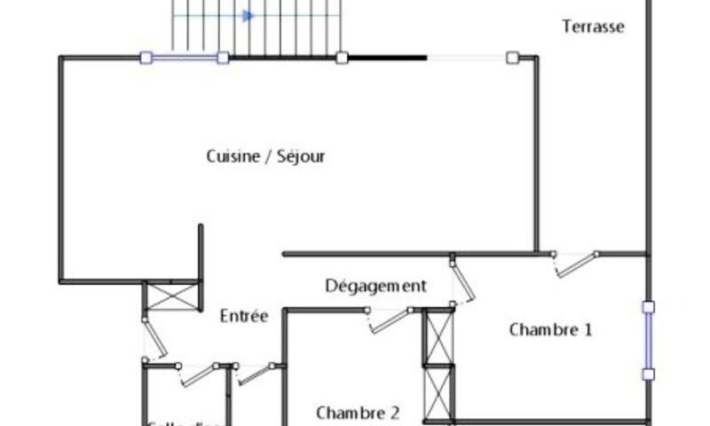 - chambre 2: un lit double, télévision, rangement, accès terrasse