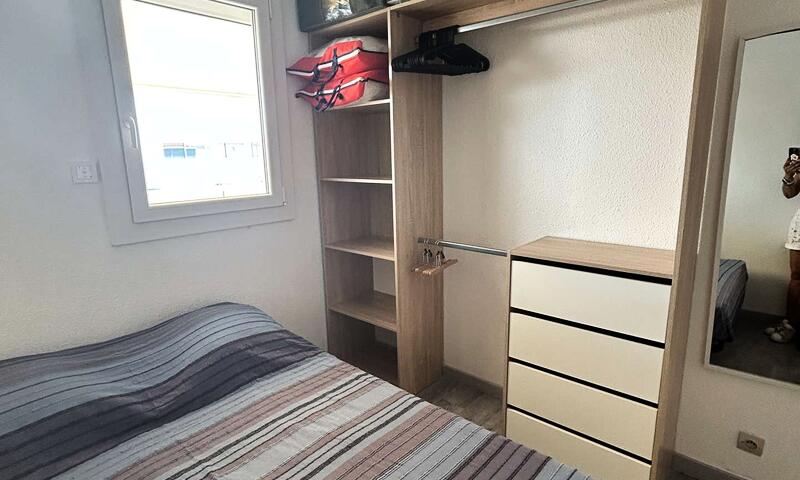 Le logement : Cette résidence est située à 200 mètres de la plage avec un accès au centre ville par la promenade piétonne. L'appartement est entièrement équipé pour quatre personnes avec en couchages: Une mezzanine avec deux lits simple en 90 pour des enfants jusqu'à 12 maximum. Une chambre avec un lit en 140 et rangement. Le coin cuisine est bien aménagée et il dispose d'un  lave-vaisselle .Une plaque électrique mobile  que l'on positionne sur la terrasse pour la cuisson.Et une grande plancha électrique