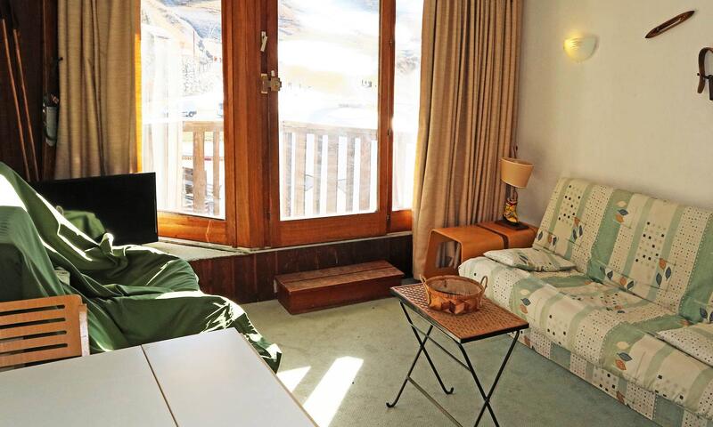 Dans la résidence les Carlines au dessus du centre commercial, départ skis aux pieds, grand studio pour quatre personnes exposition Sud / Est en plein coeur de station composé d'un coin montagne avec 2 lits superposés 1 place, d'un séjour avec 1 banquette convertible 2 places, d'une salle de bains avec wc et d'un coin cuisine ouvert sur le séjour. Balcon vue exceptionnelle sur les pistes au 4ème étage. Box à skis dans la résidence.