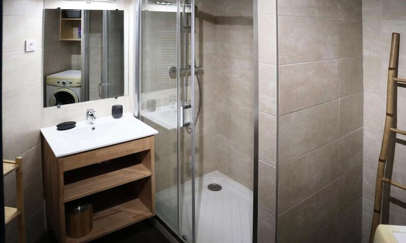 Au-dessus du centre commercial, face aux pistes, départ skis aux pieds, appartement équipé pour 5 personnes de très bon confort, comprenant entrée, coin montagne 2 lits superposés 1 place, salle de bains, WC, placard, séjour avec 1 banquette convertible 1 place, chambre fermée avec une fenêtre 1 lit 2 places, cuisine américaine entièrement rénovée, grand balcon avec une superbe vue sur les pistes et la station, box à skis.