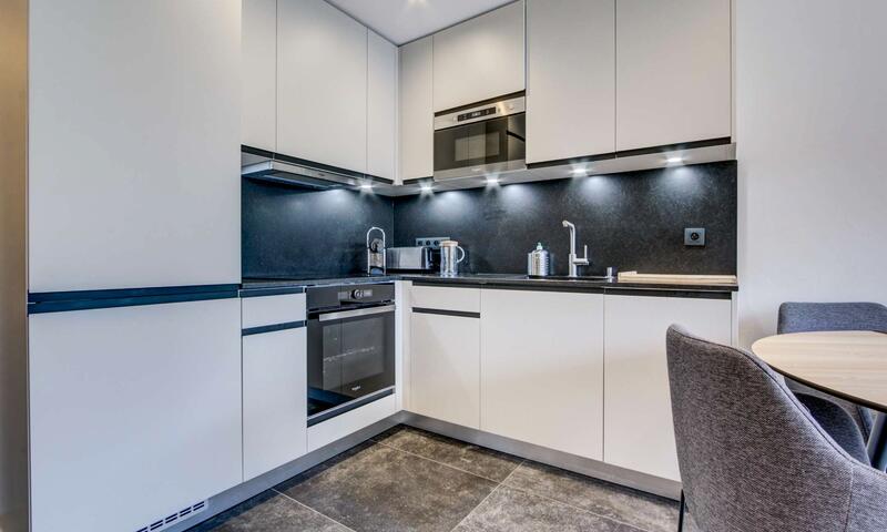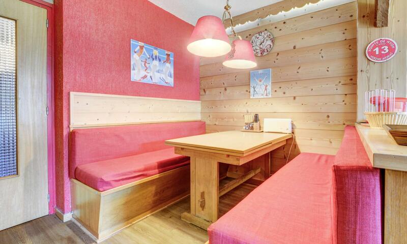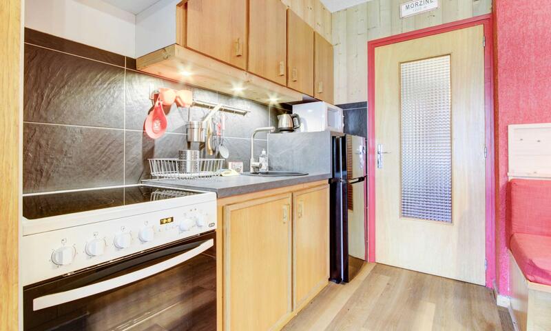 - un séjour avec cuisine ouverte, coin repas, salon avec canapé-lit convertible pour deux personnes, accès au balcon exposé sud-est avec vue sur les pistes du Pleney