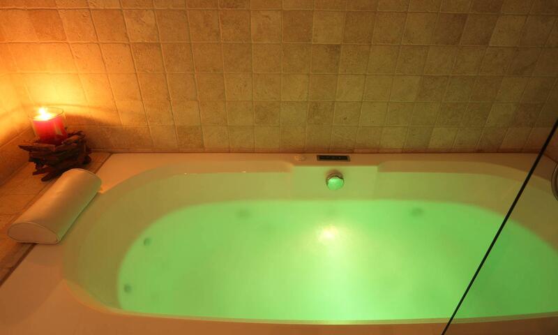 - Une chambre double (160x190) avec TV, lecteur DVD, balcon, salle de bain attenante avec baignoire balnéo et WC