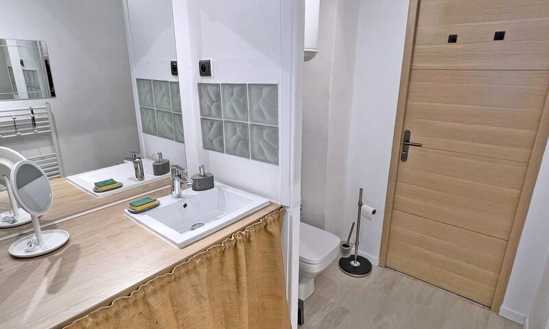 - Salle d'eau avec meuble vasque, douche, lave-linge, sèche cheveux et WC