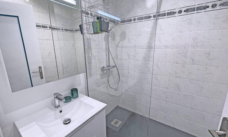 - Salle d'eau rénovée avec douche, meuble vasque, miroir et sèche-serviettes