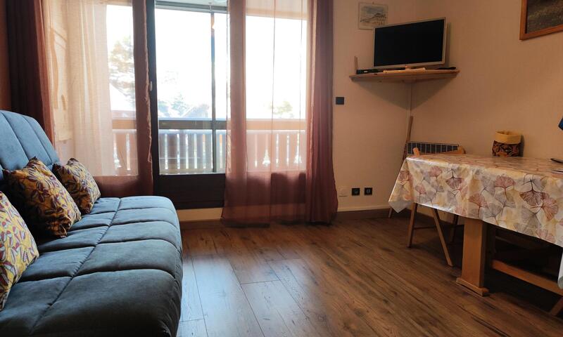 Pièce à vivre avec télévision, canapé-lit , coin repas. Véranda avec table à manger. Accès direct aux pistes