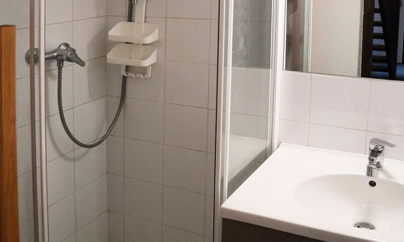 3 Pièces duplex 8 personnes Exposition Sud Niveau entrée un coin cabine fermé avec fenêtre avec 2 Lits superposés 1 place, une chambre avec 1 Lit 2 Places. Salle d'eau - Wc séparés. Coin cuisine équipé d'un lave-vaisselle et micro-onde. Séjour avec 1 Banquette convertible 2 Places et télévision. Terrasse Exposition Sud. Escaliers bois menant à l'étage, une chambre avec 1 lit 2 place et une salle de bains, 6ème étage avec ascenseur et sortie piste au niveau 7.