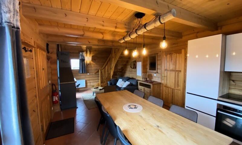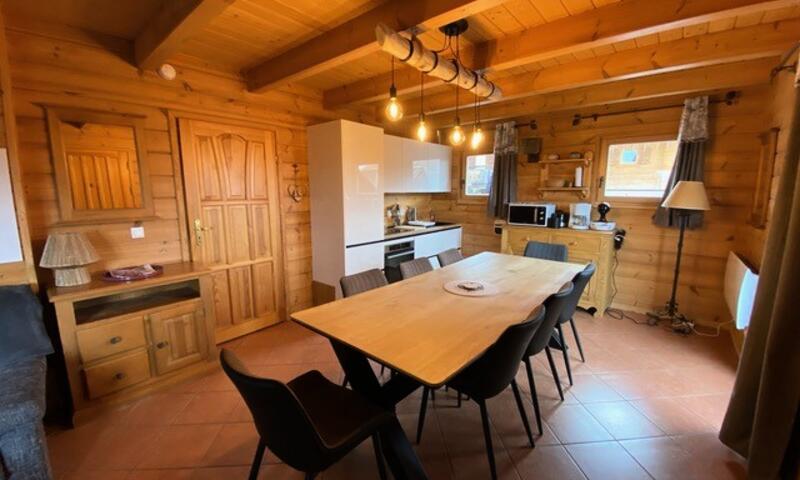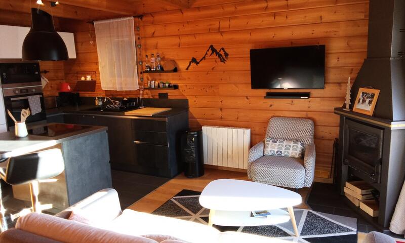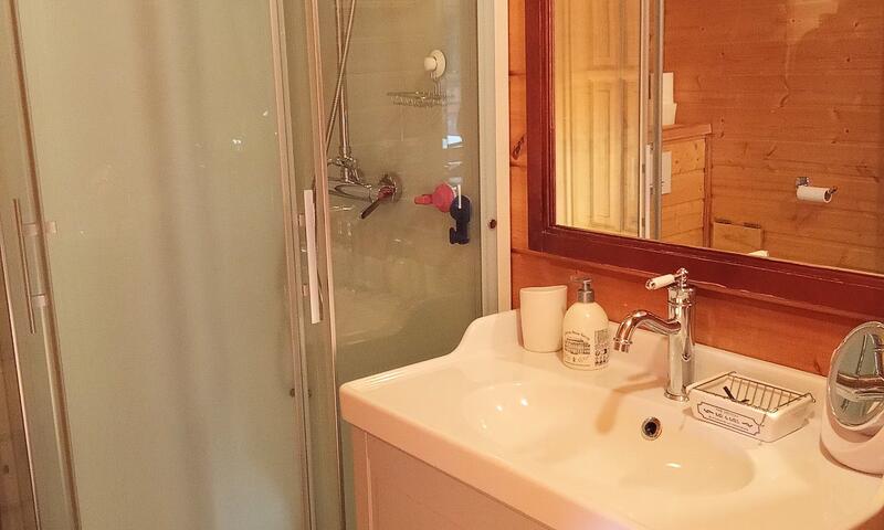 Séjour : Table, chaises,  canapé-lit, cheminée avec insert, TV. Local à skis. 1 salle de douche avec WC.
