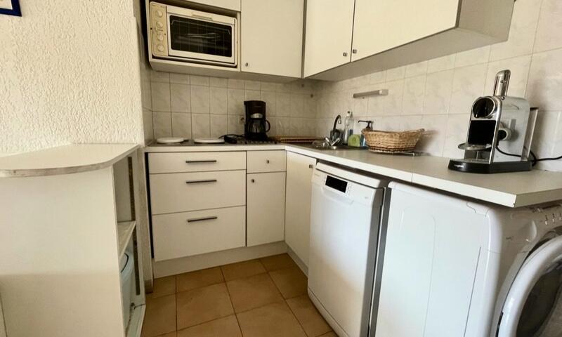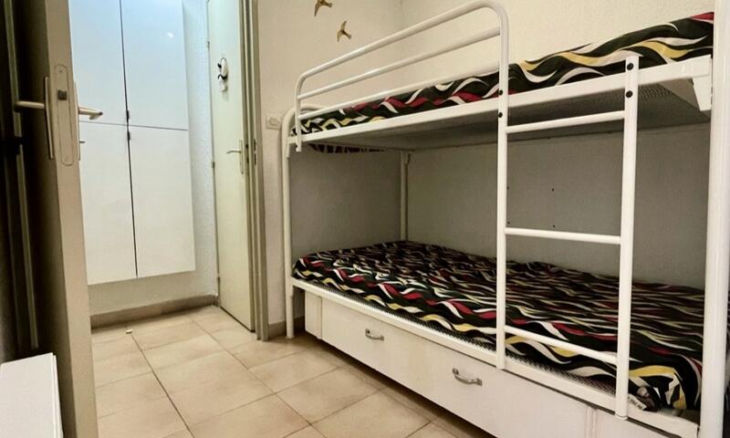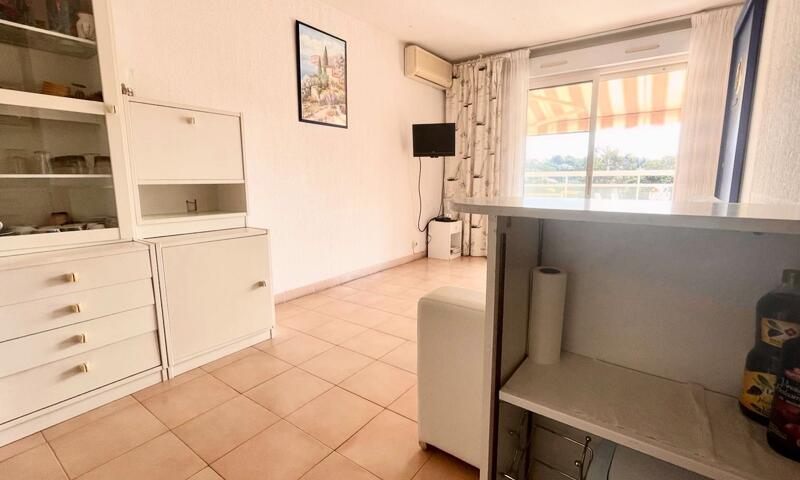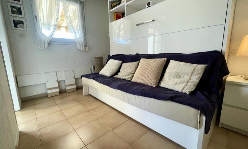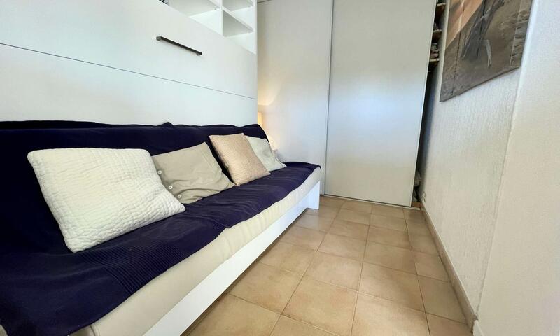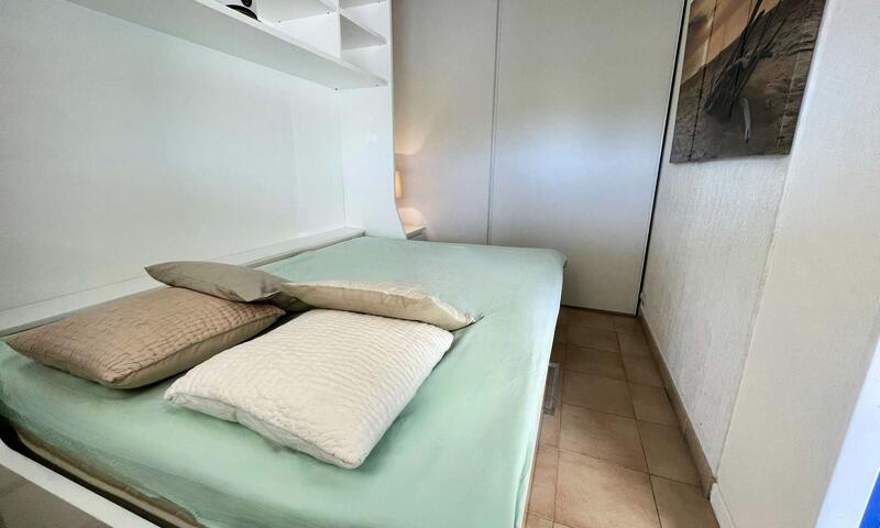 Situé dans une résidence à proximité du centre-ville et du port, cet appartement climatisé est composé d'un séjour avec coin cuisine équipée ouvert sur une belle terrasse, d'une chambre avec lit escamotable en 140 cm, d'un coin cabine avec lits superposés, d'une salle de bain et WC indépendants.