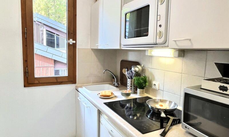 Pour vos vacances au ski au vacances d'été à Val d'Isère, réservez ce studio cabine fonctionnel qui bénéficie d'un balcon exposé Est avec une vue sur la montagne, la forêt et les pistes.