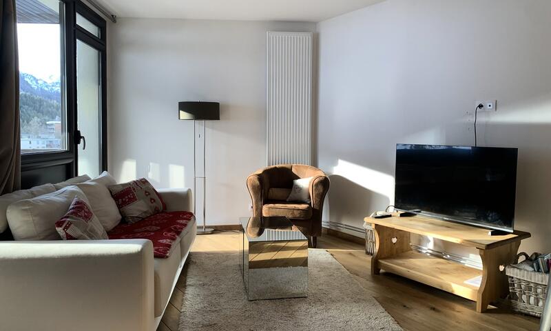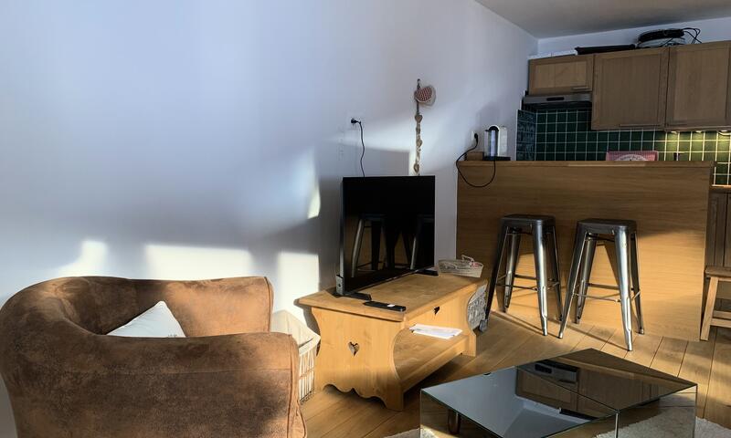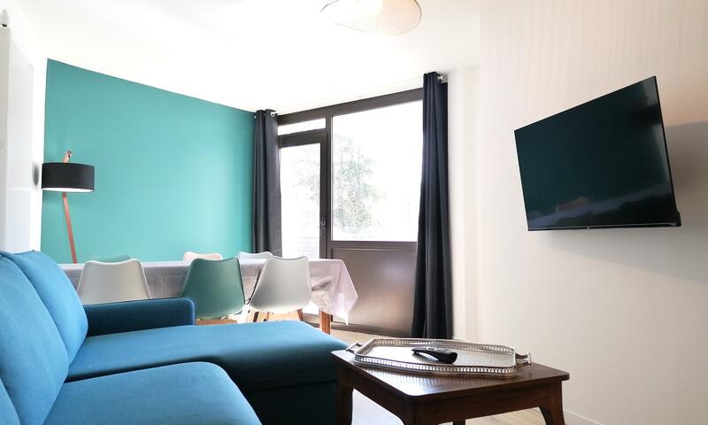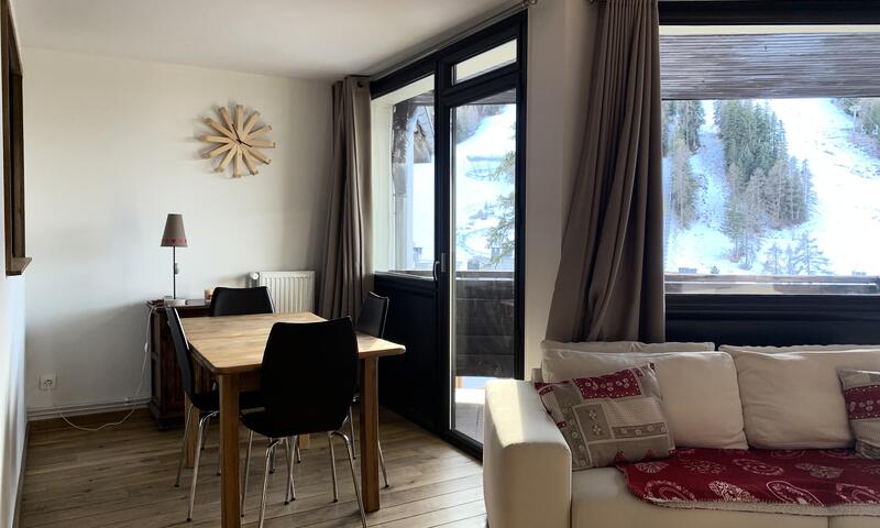 Appartement 3 pièces pour 4 personnes, d'environ 43 m². Situé au 5ème étage, avec ascenseur. Exposition Sud/Est avec un petit balcon et une jolie vue sur le centre de la station et les pistes.
