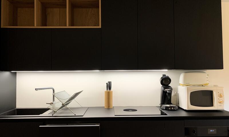 * Cuisine ouverte : micro-ondes, réfrigérateur/congélateur, lave-vaisselle, plaques à induction, hotte, cafetière Nespresso, bouilloire, grille-pain, appareil à raclette, appareil à fondue, pierrade ;