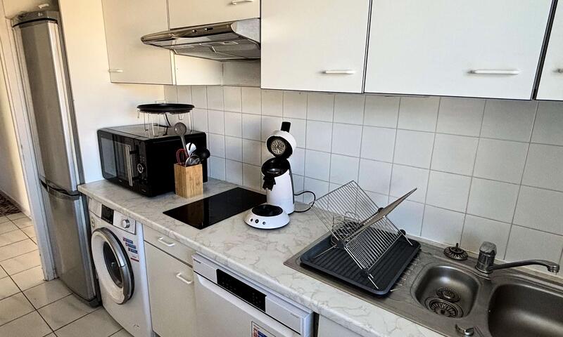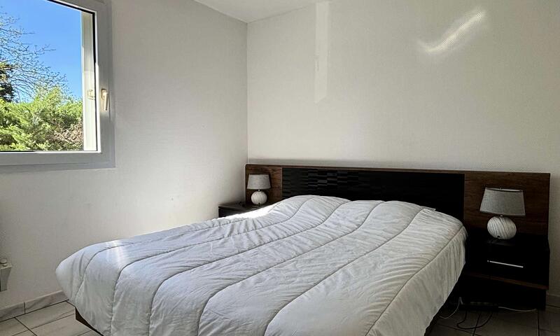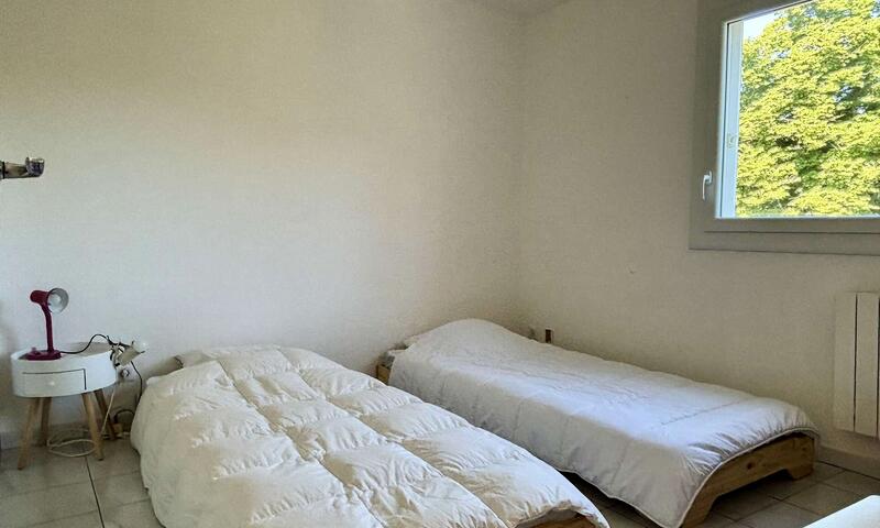 Cet hébergement de vacances se compose d'un séjour avec canapé convertible et cuisine équipée séparée, ouvrant sur un balcon, une salle d'eau et des WC séparés, une chambre avec un lit en 160 et une autre comprenant deux lits en 80.