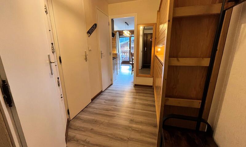 A l'entrée, un coin montagne avec 2 lits superposés, un lit double dans la chambre, une salle de bains, un WC séparé, un séjour avec un canapé convertible, une cuisine, et un balcon exposé côté sud.