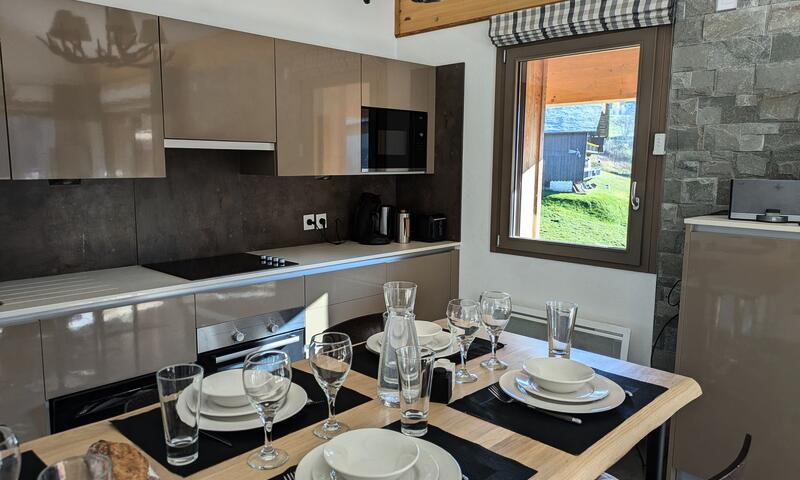 A l'entrée, il y a un coin montagne fermé avec une salle de bain attenante, d'un séjour avec une baie vitrée ouverte sur la terrasse, d'une cuisine entièrement équipée avec un four,grille pain, bouilloire, crepière, frigo, cafetière ainsi qu'un appareille à fondue et d'un appaeil a raclette, d'une chambre avec sortie sur la terrasse, et d'une salle de bain avec WC.