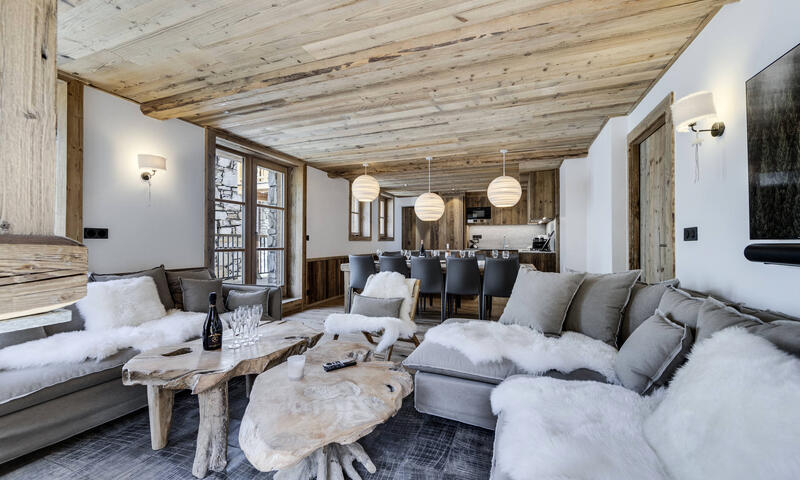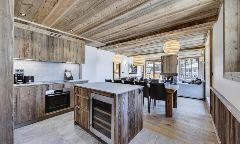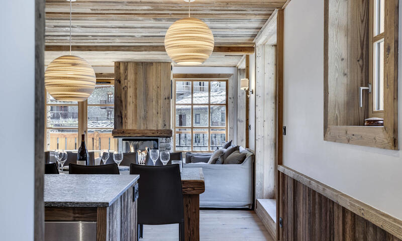 - Salon avec cheminée, TV connectée, cuisine ouverte entièrement équipé avec un îlot central.