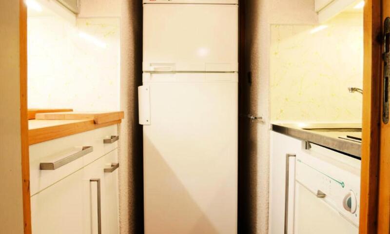Ce studio à deux pas du télécabine de Montchavin avec une belle vue dégagée sur la vallée se compose d'une kitchenette équipée (plaques vitrocéramiques, micro-ondes, grille-pain, bouilloire, cafetière électrique, réfrigérateur), d'une salle de bain avec douche et WC.