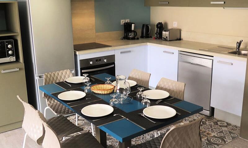 Cet appartement classé en 4 étoiles Meublés de Tourisme est composé d'une chambre avec lit double, d'un séjour avec canapé convertible pour 2 personnes, d'un coin cuisine équipé (réfrigérateur, micro-ondes, lave-vaisselle, cafetière, grille-pain, bouilloire...), d'une salle d'eau avec douche, lavabo, WC et lave-linge.