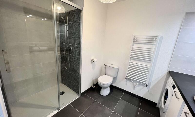 Salle d'eau avec douche à l'italienne, W.C, lave-linge et sèche-cheveux.