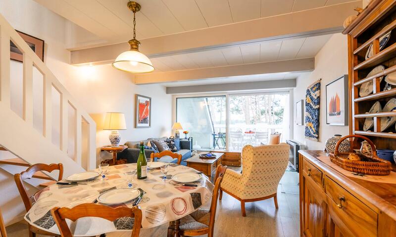 Surplombant le port de La Trinité sur Mer, dans un environnement de pins, à 500m  des commerces, et 2 km des plages, très bel appartement 3 pièces duplex (env.50m²) pour 4 personnes, situé dans la résidence LES TERRASSES DU PORT (Bâtiment D, 1er étage, porte 1.24) :
