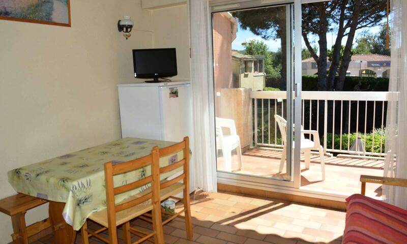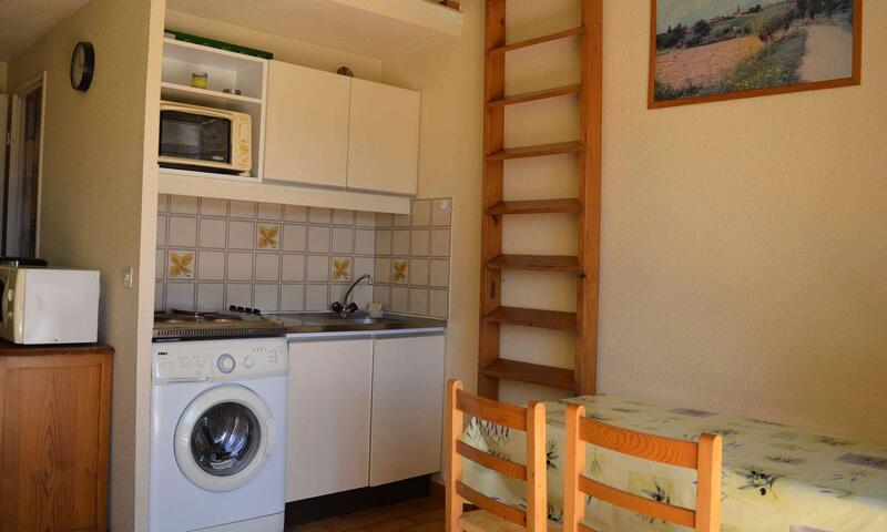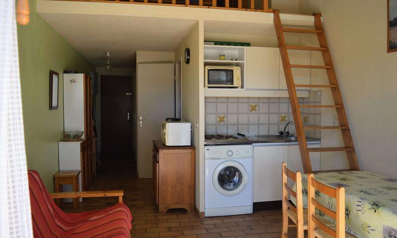Cet appartement climatisé est composé au 1er étage d'un salon avec canapé, d'une kitchenette équipée, d'une chambre avec un lit 2 places et d'une mezzanine avec deux lits 1 place. Balcon côté Sud.