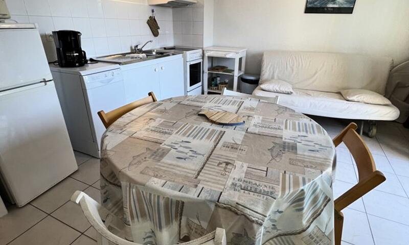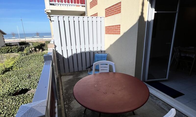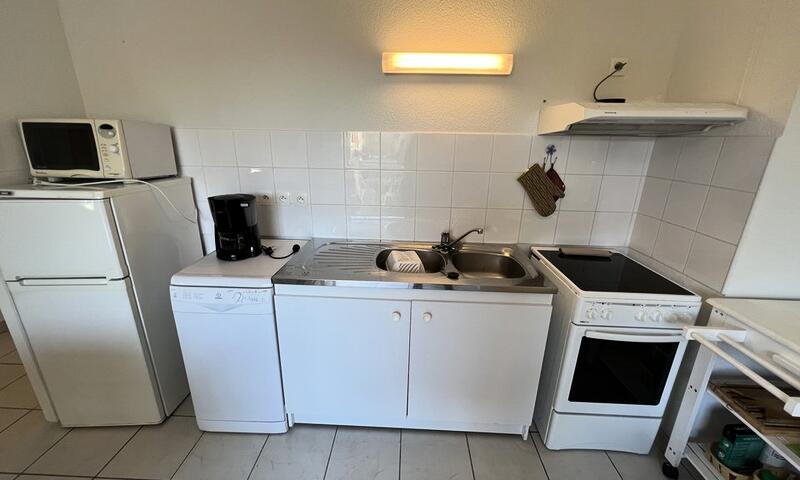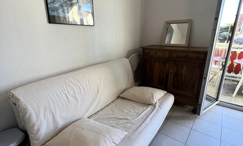 Idéalement placé à quelques mètres des plages Soulacaises et du centre-ville, cet appartement situé au premier étage de la résidence Les vagues vous séduira pour des vacances reposantes. Composé d'une entrée, une cuisine équipée ouverte sur un espace à vivre salon avec canapé lit et téléviseur, une chambre avec un lit double en 160 cm et rangements, une salle d'eau, un WC. Une belle terrasse vous attend  pour y déjeuner ou se détendre. L'appartement est équipé d'une place de parking privée en sous sol. Caution à régler sur place. Chèques vacances acceptés.