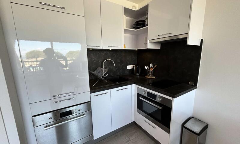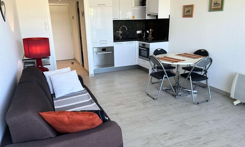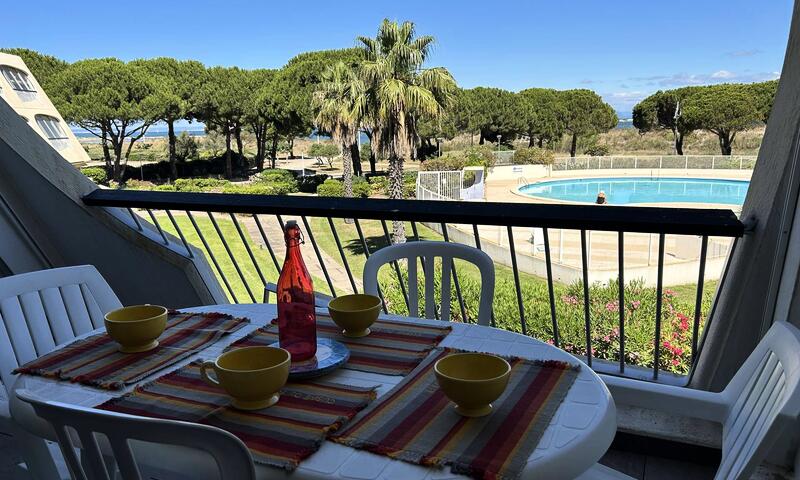 Le logement : Ce logement à la mer est situé au 1 er étage de la résidence l'Escale Plage. Il est composé d'un séjour avec un canapé convertible, ainsi qu'un téléviseur, une cuisine neuve et bien équipé avec plaque de cuisson, grand réfrigérateur -congelateur,four combiné Une salle d'eau avec baignoire, lavabo, WC. Une terrasse avec un store solaire qui a vu sur la piscine et la mer