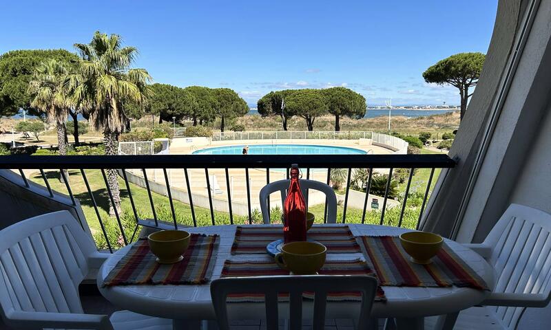 Les avantages de cette location à la mer : cet appartement est situé dans une résidence sur plage, proche de tout, avec piscine et parking collectifs.