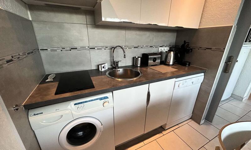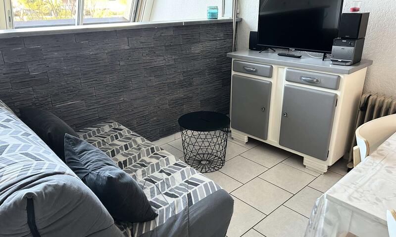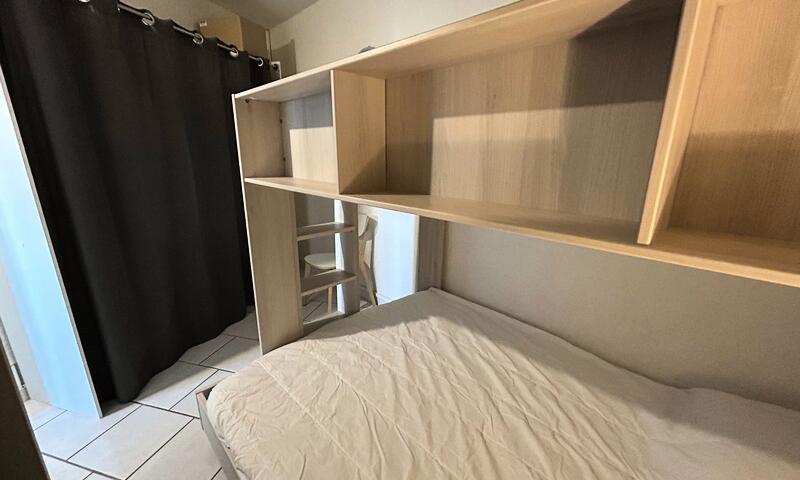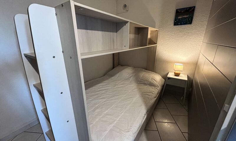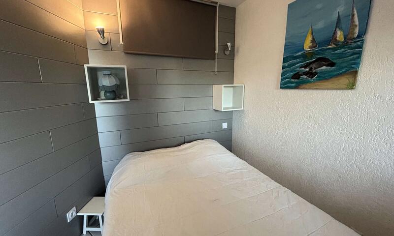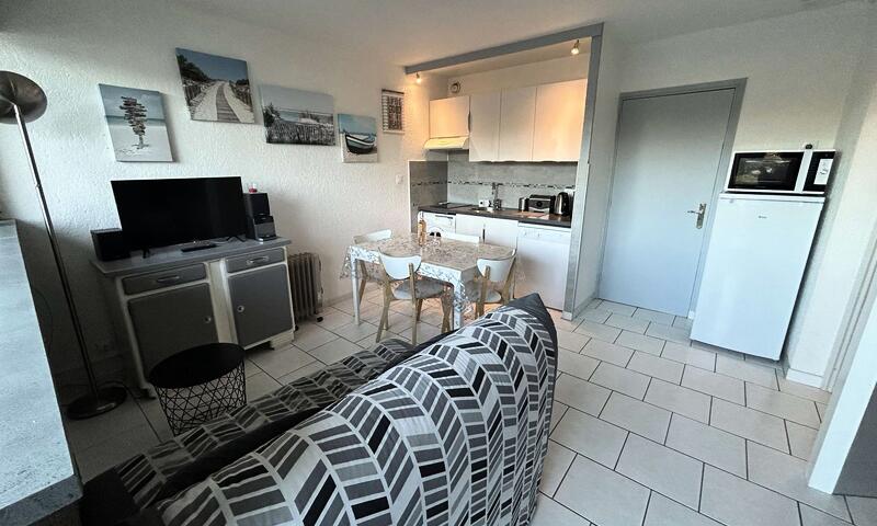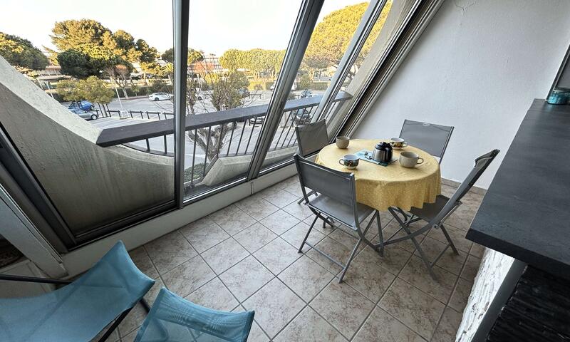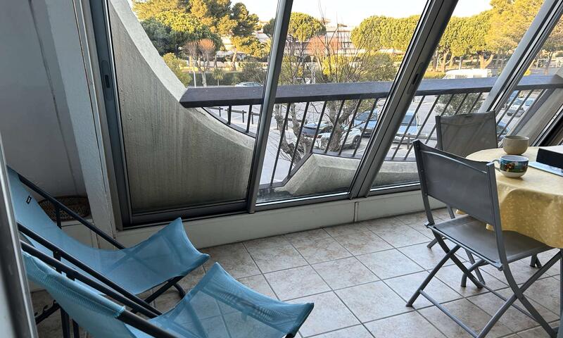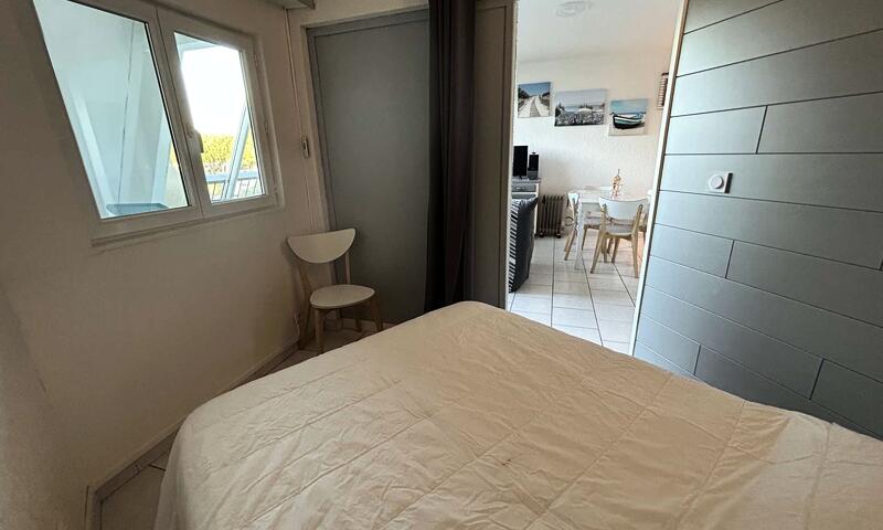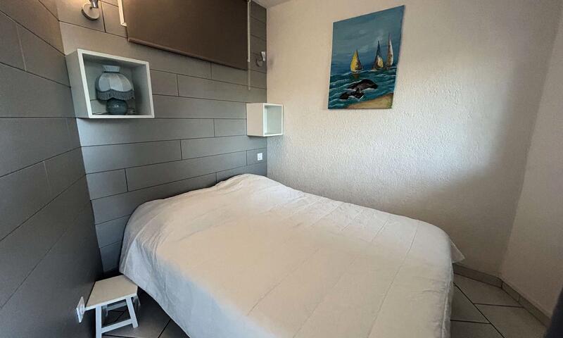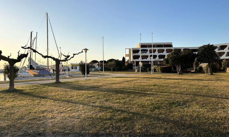 Ce deux pièces cabine se situe dans le quartier nord de Port Camargue, dans la résidence l'Escale Port. Il se situe au 1er étage. Il se compose d'une entrée, d'un séjour avec un bz en 140 cm, une télévision, un coin cuisine équipé avec réfrigérateur congélateur, un lave vaisselle, un lave linge, une chambre avec un couchage double en 140 cm, un coin cabine avec un lit superposé (140 cm en bas et 90 cm en haut), une salle d'eau et un wc indépendant. Une loggia ouverte permet d'agrandir l'espace de vie du séjour.