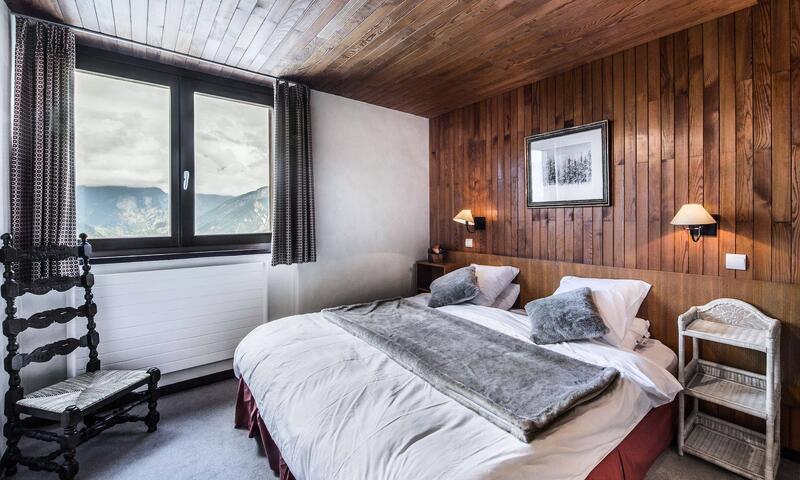 Superbe vue sur le domaine skiable et les sommets. Grande terrasse de 10m² face aux pistes et aux télésièges. Grande baie vitrée avec double vitrage.