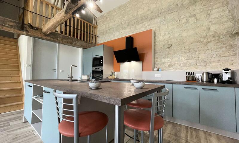 Superbe ancien corps de ferme, le charme de l'ancien refait à neuf par un architecte. Vous pourrez profiter d'une habitation individuelle de 80m2 avec une belle hauteur sous plafond, le tout refait à neuf avec le charme et l'élégance de la pierre apparente. Vous bénéficierez d'une belle pièce à vivre avec salon, salle à manger et cuisine équipée et aménagée avec lave-vaisselle et four. Une salle de bain avec lave-linge et sèche serviette. A l'étage une chambre avec un lit double en 140cm pour deux personnes et une mezzanine avec deux lits simples en 80cm chacun qu'il est possible de rassembler pour former un couchage en 160cm, une occultation avec des rideaux est possible pour un meilleur confort. Le tout sur un jardin arboré, commun avec les propriétaires. Un salon de jardin est à disposition, un bel espace pour profiter du calme, du soleil et des poules en liberté.