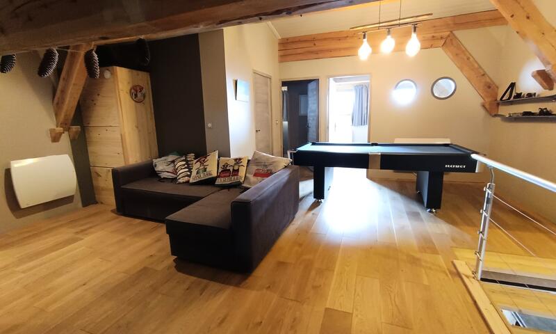 1 espace détente avec billard, canapé d'angle, TV avec grand écran.