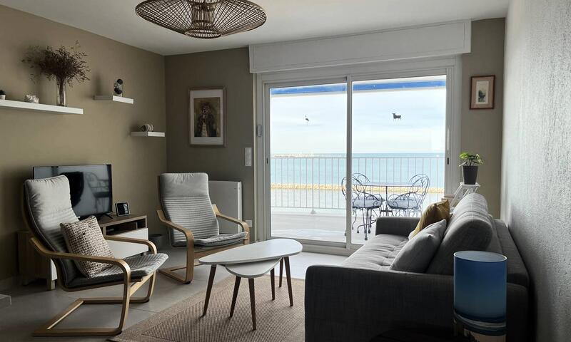 CENTRE VILLE- CLASSEMENT Meublé de tourisme 3* -Magnifique appartement 3 pièces de 65m² entièrement rénové, face à la mer au Centre Ville, au 5ème et dernier étage avec ascenseur (Petit ascenseur 40cm/100cm). Séjour spacieux et lumineux (tv, climatisation, wifi) avec canapé convertible en 140 cm donnant sur une terrasse de 12m² avec mobilier, plancha électrique, store banne et une magnifique vue sur la mer et toute la baie du Grau du Roi. Une cuisine entièrement équipée (lave-vaisselle, micro-ondes, frigo/congélateur, four), une chambre avec un lit double en 160cm, climatisation et moustiquaire, une chambre avec 2 lits simples en 90cm, climatisation et moustiquaire. Une salle d'eau avec lave linge et un wc séparé. Place de parking privée à 3min à pieds. Venez profiter de ce superbe appartement au cœur du Centre ville, avec toutes les activités nautiques et les commerces à proximités. Les animaux ne sont pas admis. Meublé et équipé pour 6 personnes.