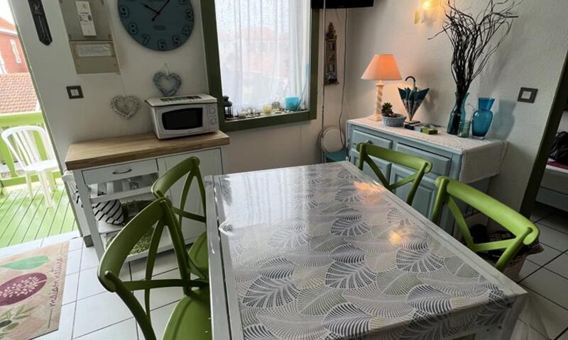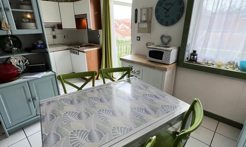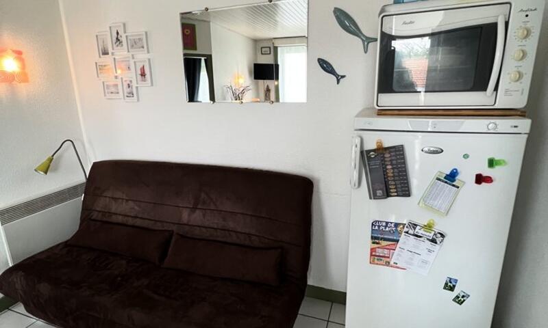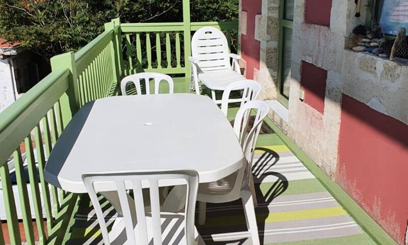 Située en centre-ville de Soulac/mer, la résidence Marcellus vous propose cet appartement au 1er étage avec balcon pour des vacances reposantes. Idéalement située à 200 m des plages océanes,  la résidence vous fera bénéficier d'un environnement avec piscine extérieur collective pour vous détendre. Cet appartement se compose d'un coin cuisine équipée ouvert sur un espace à vivre, une chambre avec un lit double en 140 cm et rangements, une chambre cabine avec deux lits simples superposés en 90 cm, une salle d'eau avec lave-linge, un WC.  Le balcon est équipé  de mobilier de jardin (table et chaises), chaises longues et parasol. Caution à régler sur place. Chèques vacances acceptés.