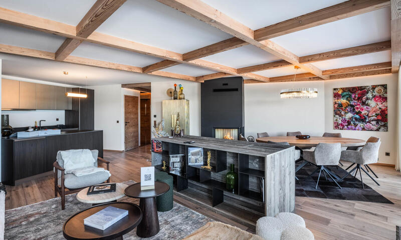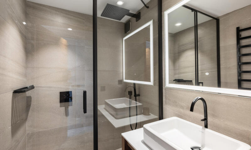 Appartement neuf d'environ 151m², pour 4 adultes et 4 enfants avec 2 chambres et un coin montagne. Les pistes de skis sont aux pieds de la résidence, accessible par le ski room.