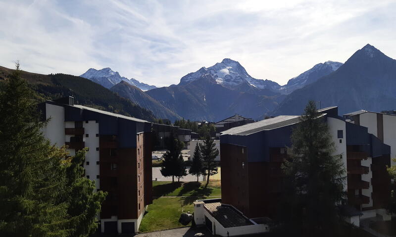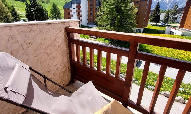 Balcon exposé sud, avec vue dégagée sur les montagnes et sur les pistes.