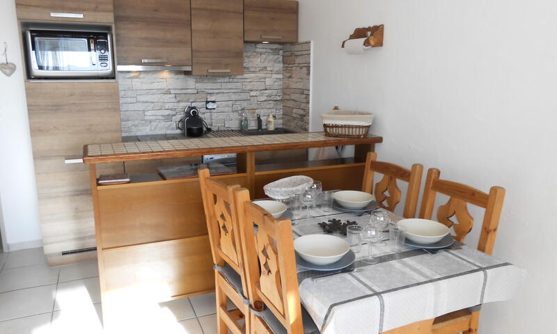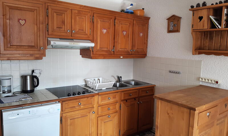 Equipements: 2 plaques vitrocéramiques, micro-onde combiné, réfrigérateur, lave-vaisselle, cafetière, bouilloire, grille-pain, appareil à raclette, appareil à fondu.