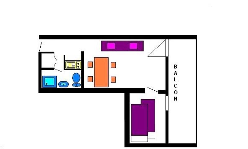 L'appartement se compose d'un coin cuisine équipée et d'un séjour avec un canapé convertible permettant le couchage pour deux personnes. Vous trouverez également une salle de bains avec baignoire un et WC