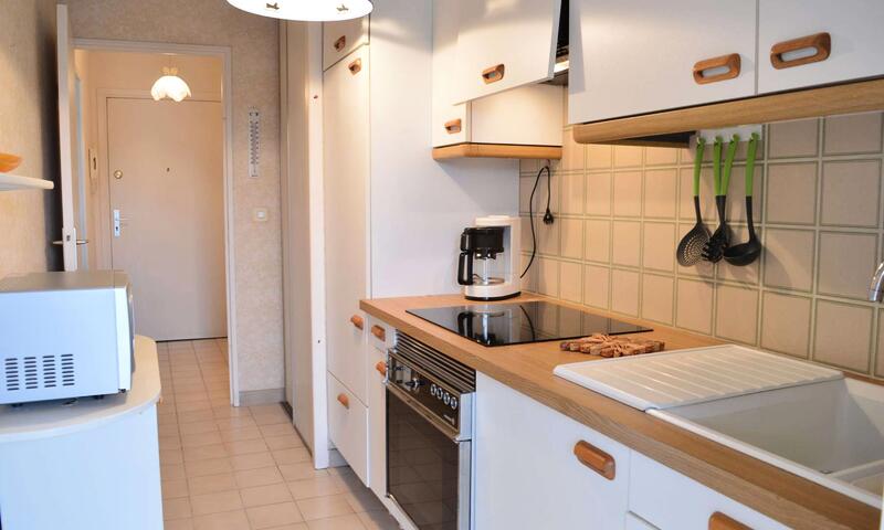 Au sixième étage, cette location de vacances se compose d'un séjour avec 1 lit 2 personnes et un canapé lit deux personnes, une cuisine indépendante et équipée, une salle de bain et un WC.