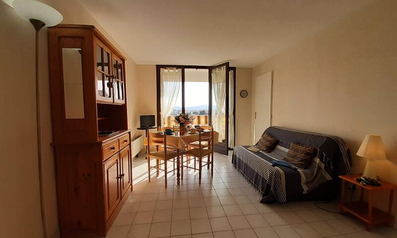 Cette location de vacances avec piscine est située au deuxième étage et se compose d'un  séjour avec un canapé convertible 2 places, , une cuisine indépendante et équipée, une chambre avec un lit deux places,  une salle de bain et un wc.